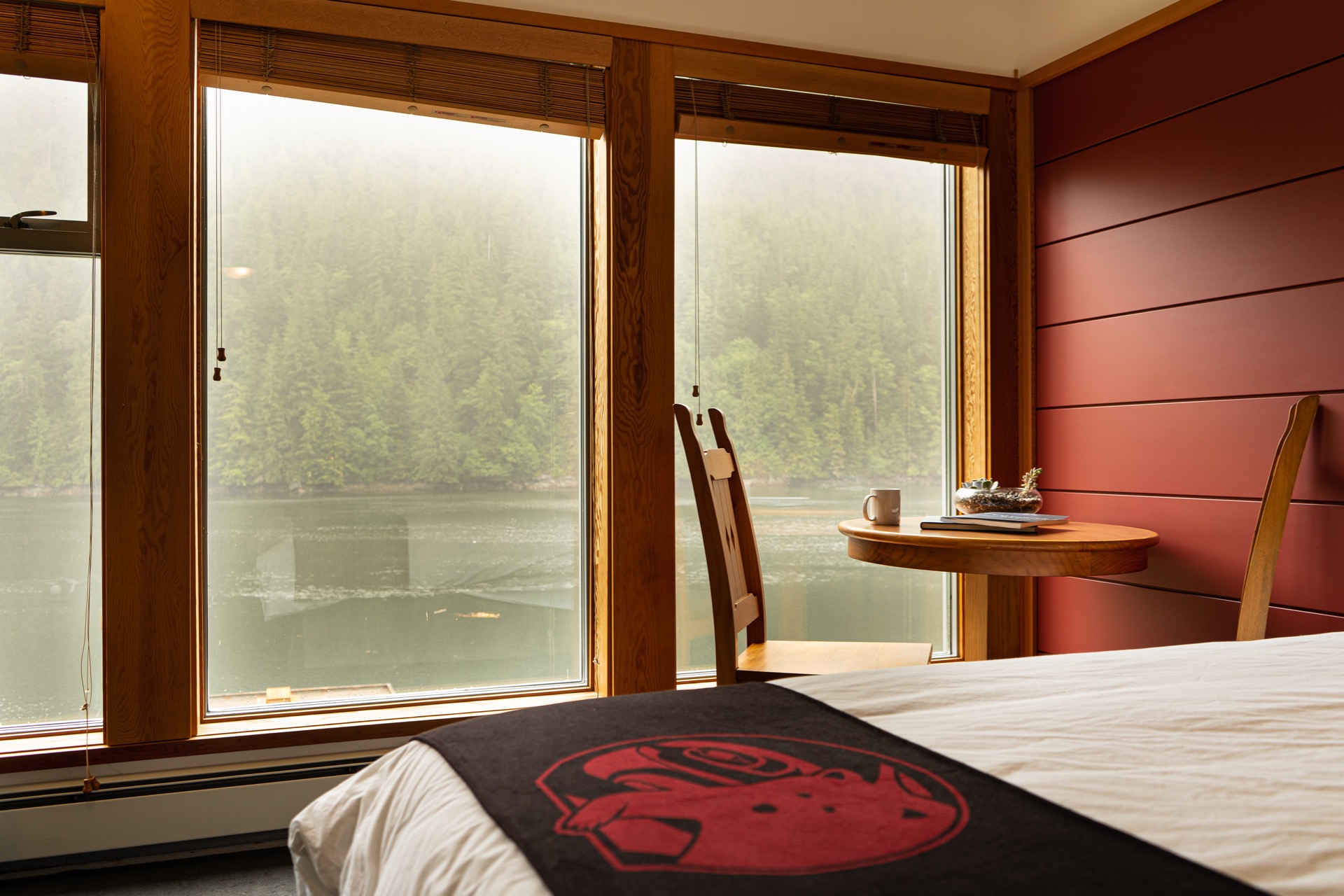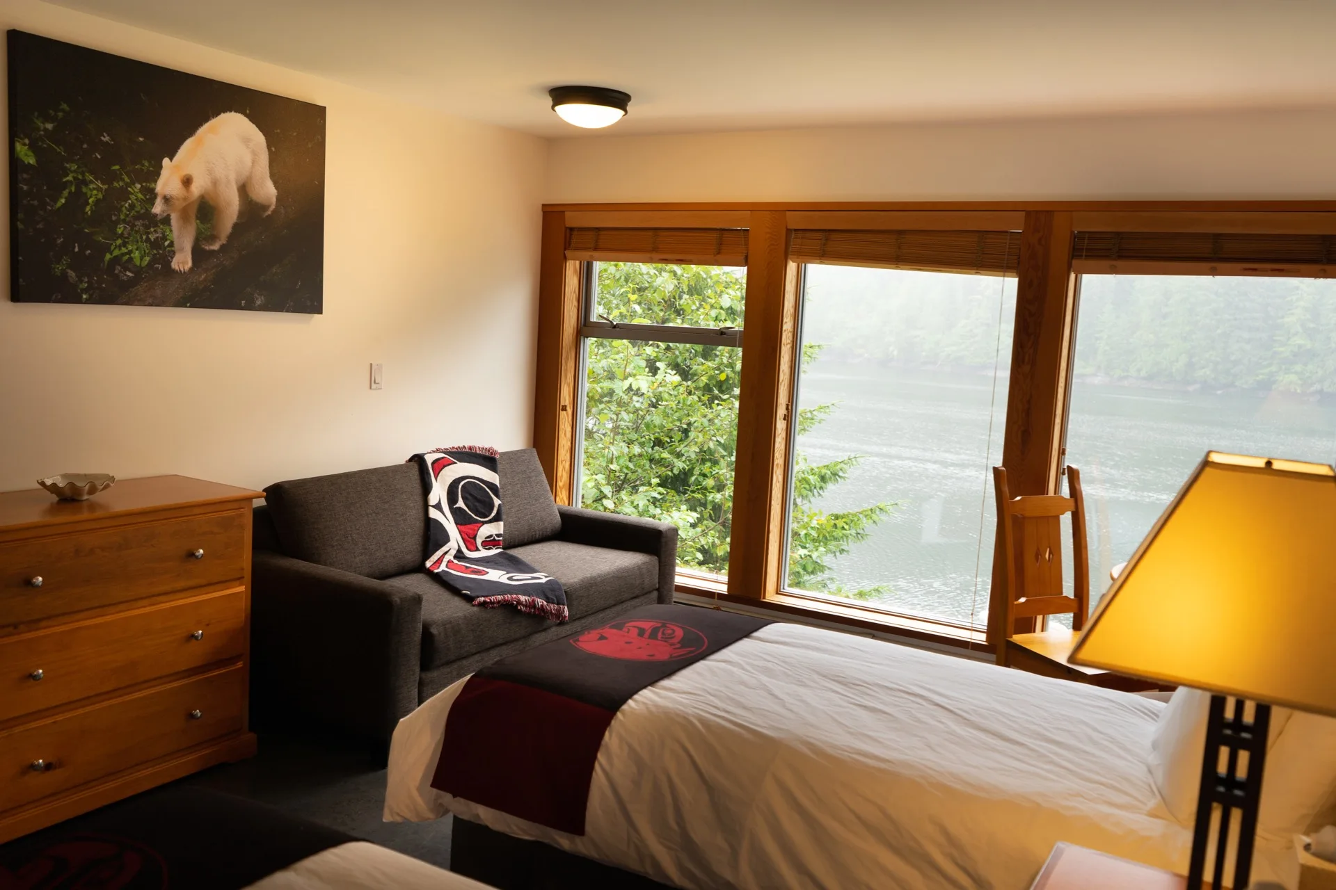 Architecturally, the exterior of the Lodge pays homage to the traditional longhouses built by west coast First Nations. Inside, the atmosphere is modern and relaxing with all the comforts of home.
